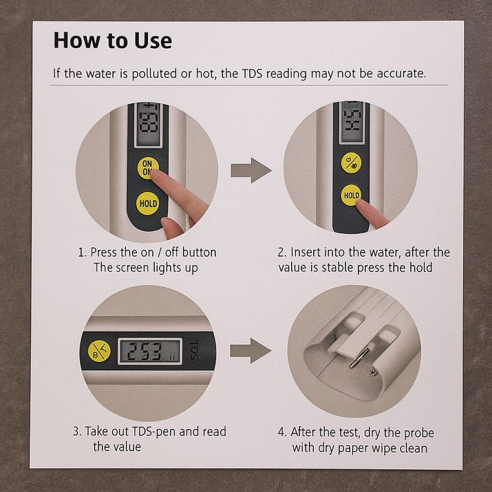Answer 3: To use the TDS meter, simply immerse it in water up to the specified maximum level of 4 cm. After use, rinse the probe with distilled water and avoid storing it in high temperatures or direct sunlight to maintain its accuracy and longevity.